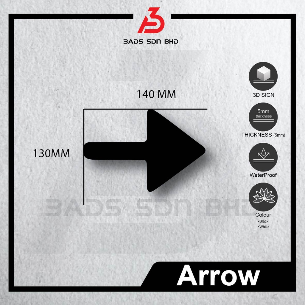 Arrow - 3D Acrylic Black / White Signage (3MM Thickness)