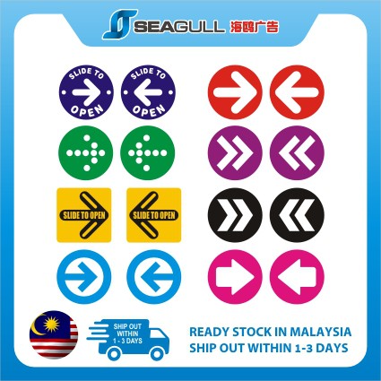Arrow Sticker , Pelekat Anak Panah , Masuk Keluar Slide To Open Slide Left , Slide Right