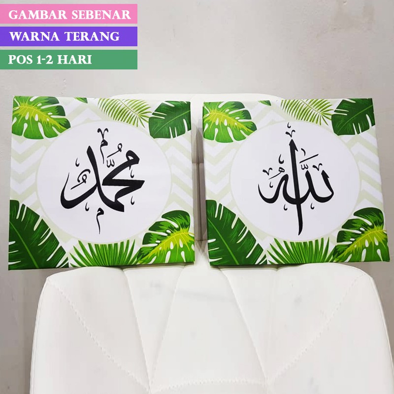 Art Canvas Frame Ayat Allah Muhammad Set 2 in 1 With Stretching Frame Kaligrafi Khat Kufi Frame Islamic frame murah
