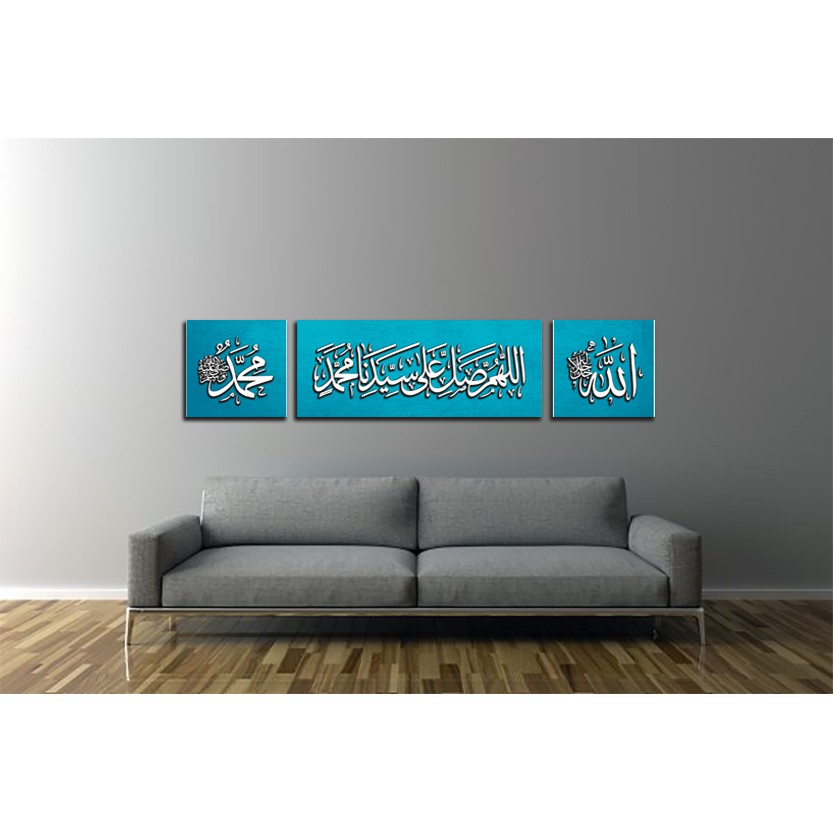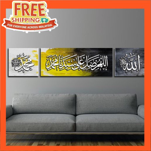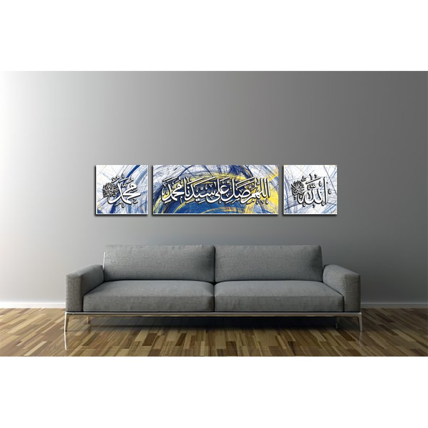 Art Canvas Frame Selawat Nabi SAW Set 3 in 1 With Stretching Frame Calligraphy Khat Kufi Frame Islamic