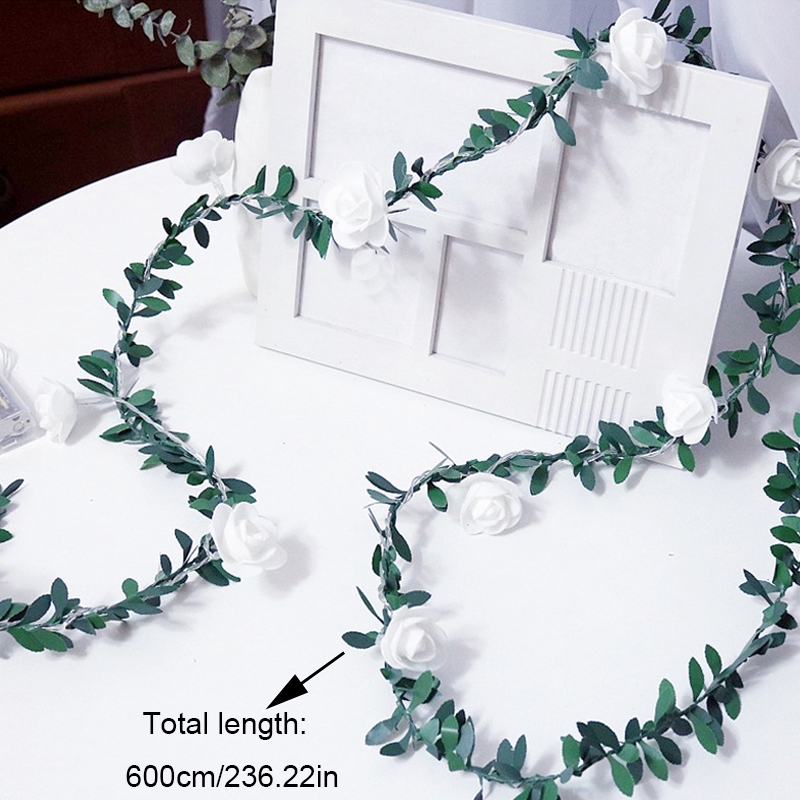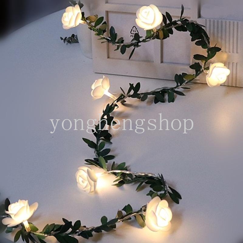 Artificial Green Leaf Rose Flower LED String Lights DIY Garland Lamp Xmas Party Wedding Decor Supply Outdoor Garden Decorative Light