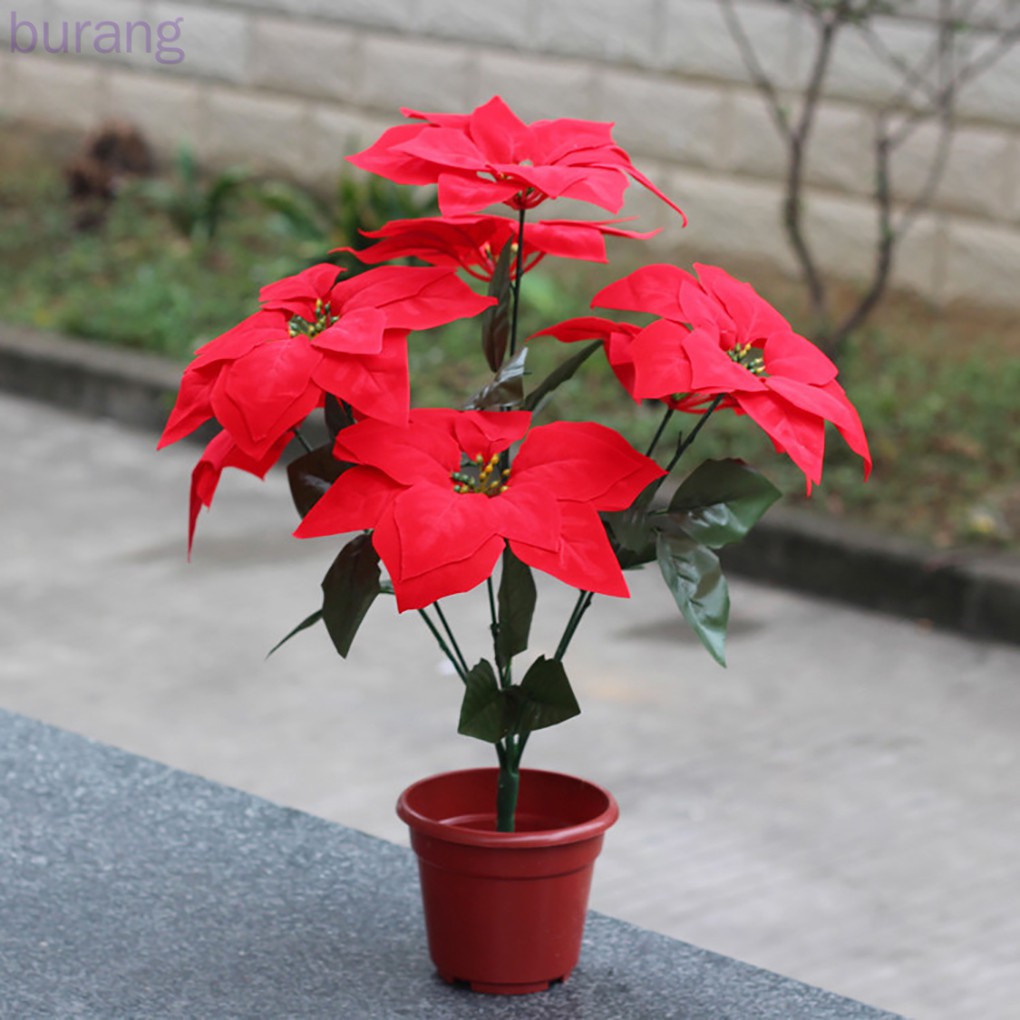Artificial Poinsettia Flower Home Office Fake Christmas Flower Party Event Floral Decoration burang
