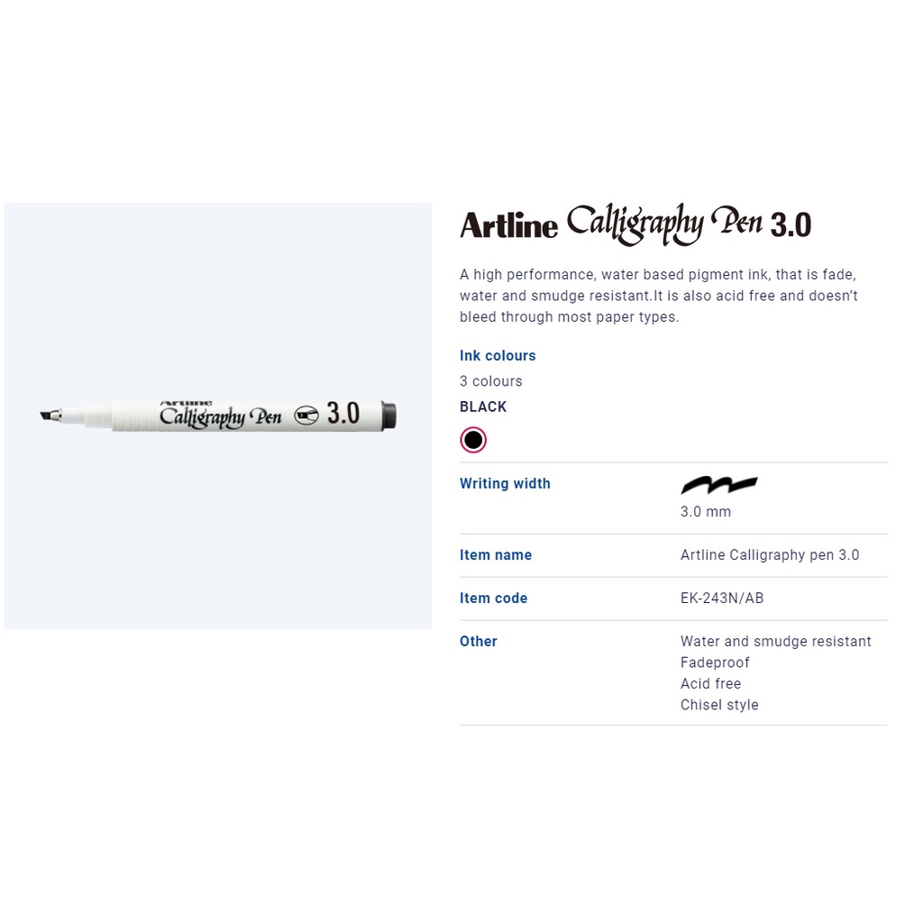 Artline Calligraphy Pen - Flat / Chisel Tip - Calligraphy or Jawi Writings