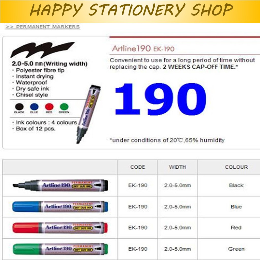 Artline/Permanent Marker/Penanda Kekal/Writing Pen/190/2.0-5.0mm (1Pc)
