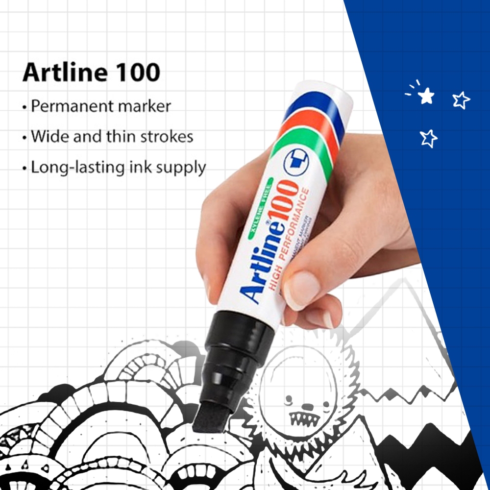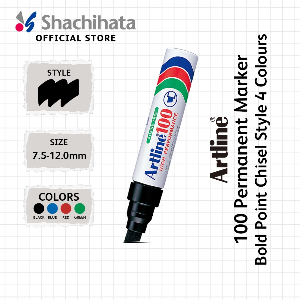 Artline 100 Permanent Marker - Bold Point 7.5mm - 12.0mm | Chisel Style | 4 Colours | Waterproof