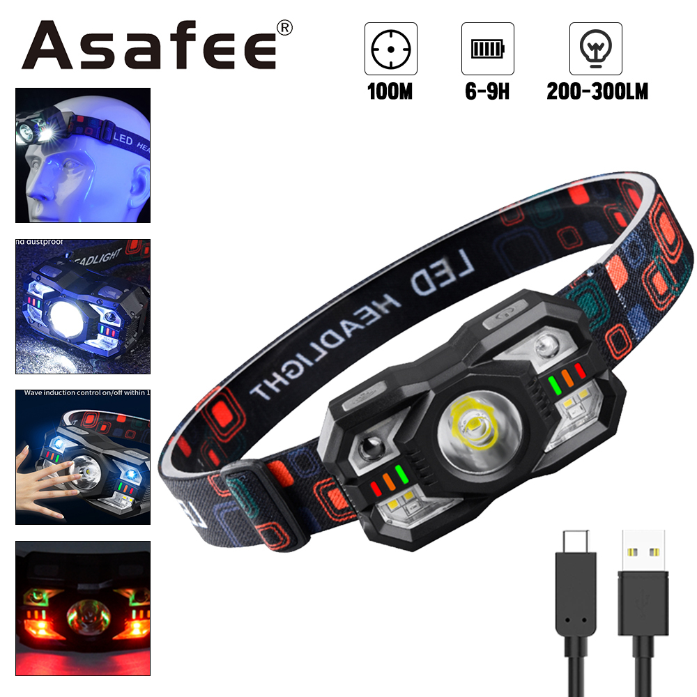 Asafee ZL-009 Outdoor Portable Headlight SuperBright XTE LED Forehead Light Fishing Work Lamp Built in Battery Type-C Rechargeable 5Mode Sensing Switch Fixed Focus IPX4 Waterproof
