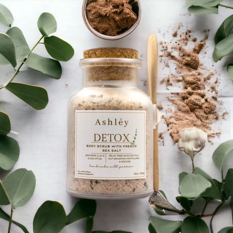 Ashley Bentonite Clay & Eucalyptus Detox Bath Salt 285gm with French Sea Salt | Free Ashley Wooden Spatula) | Bath Salt