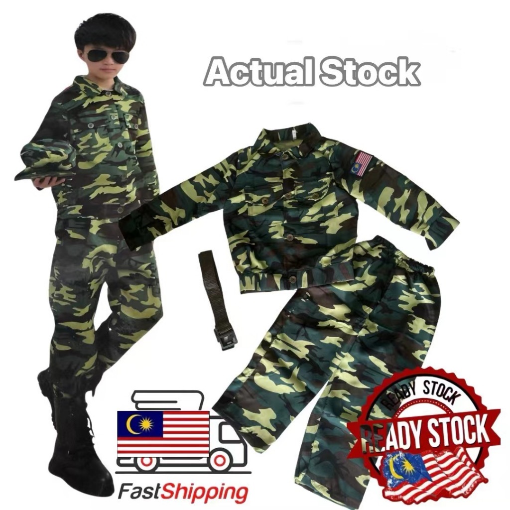 Askar Costume Pretend Play Soldier Cosplay Army Occupation Kids & Adult Long Sleeve Unisex Baju Tentera Budak & Dewasa