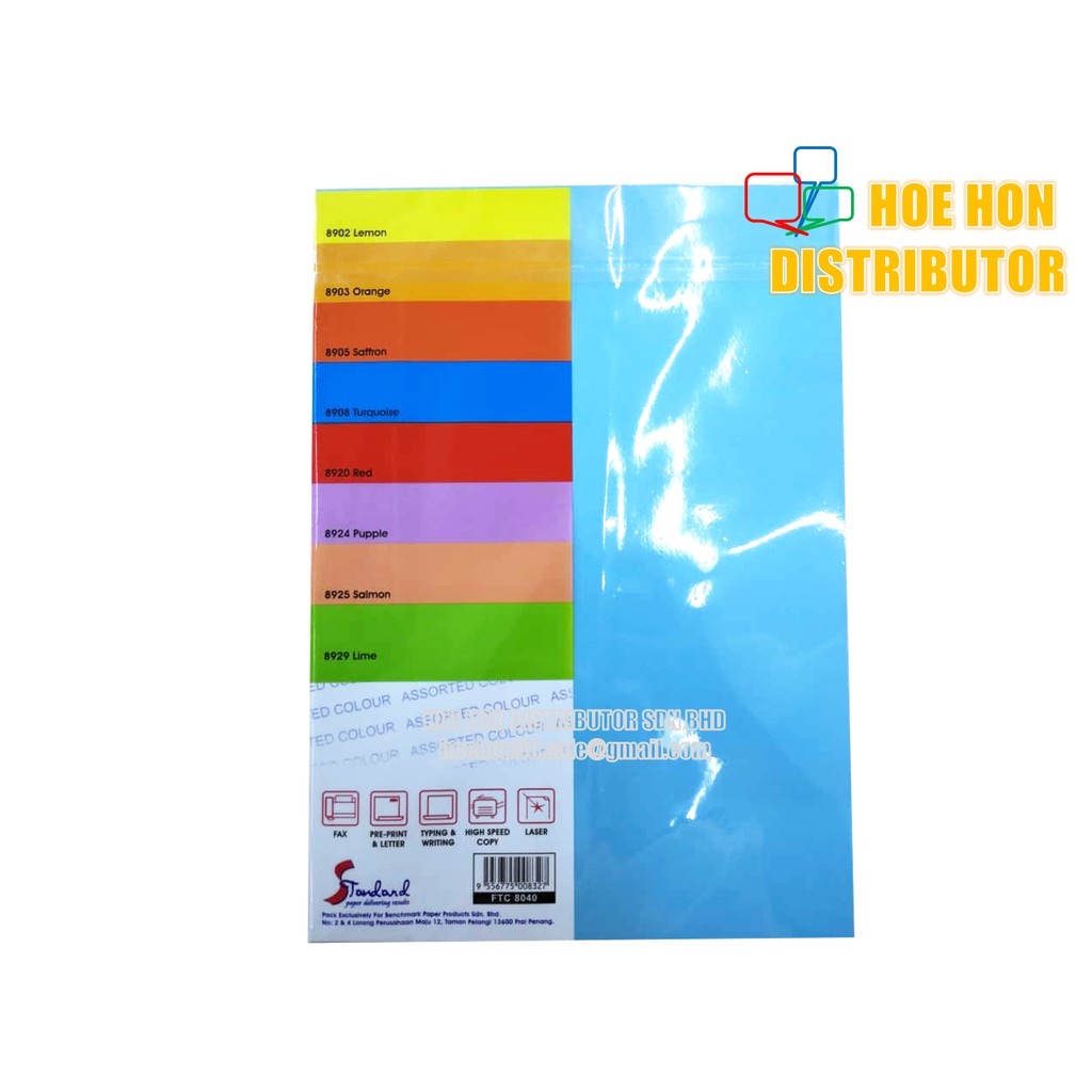 Assorted / Mix Colour A4 Paper 80gsm 8 Color x 5 sheet / 40 Sheet FTC 8040