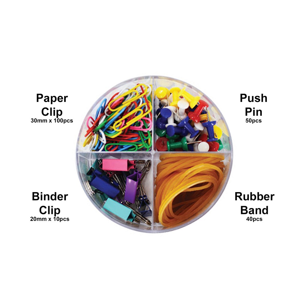 Astar 4 in 1 Combo Desk Accessories (CBC5318) Rubber Band + Push Pin + Binder Clip + Paper Clip