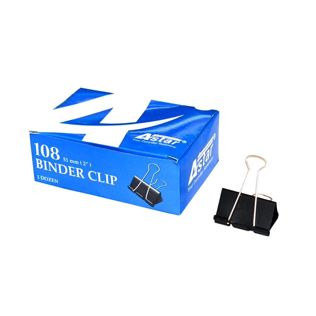 Astar No.108 - 51mm Binder Clip (Box of 12pcs) Double Clip Black Paper Clip