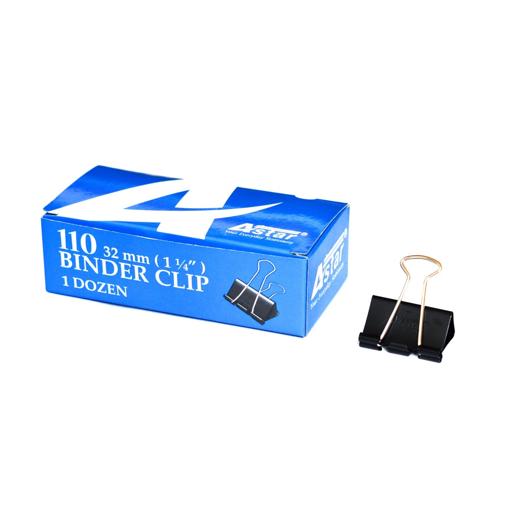 Astar No.110 - 32mm Binder Clip (Box of 12pcs) Double Clip Black Paper Clip