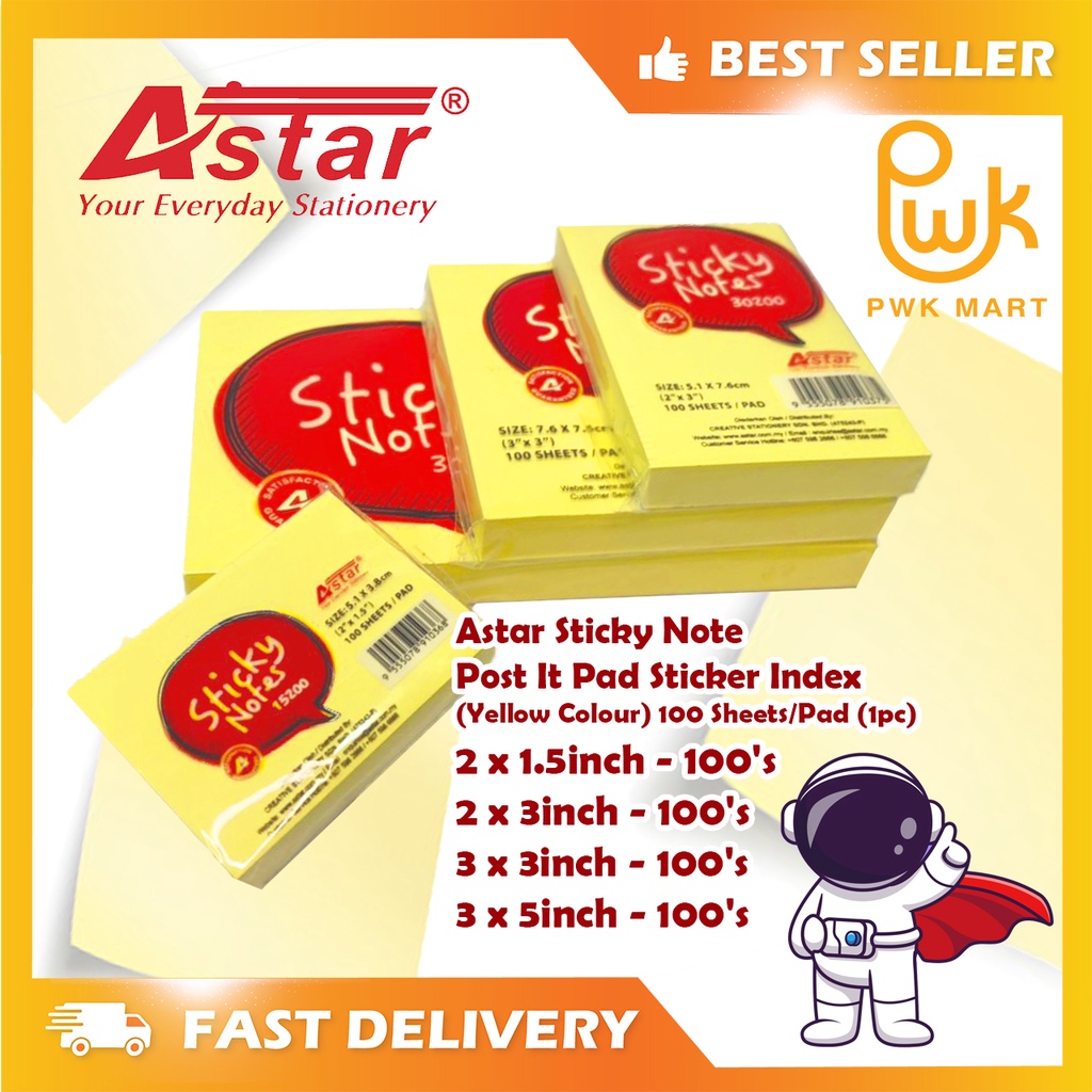 Astar Sticky Note Post It Pad Sticker Index (Yellow Colour) 100 Sheets/Pad (1pc)