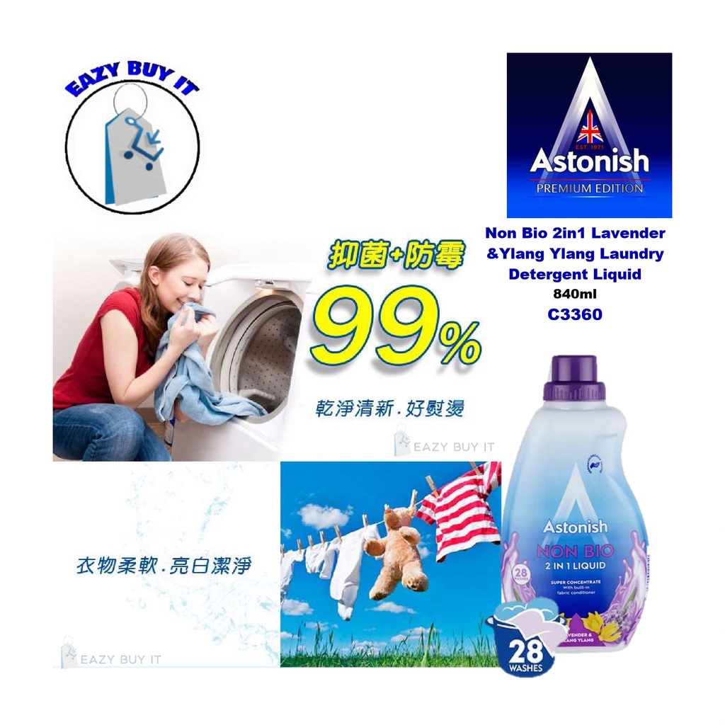 ASTONISH NON BIO 2 IN 1 LAUNDRY LIQUID LAVENDER & YLANG YLANG (840ML)