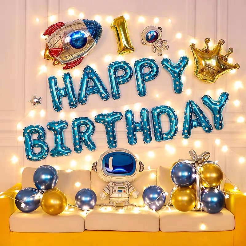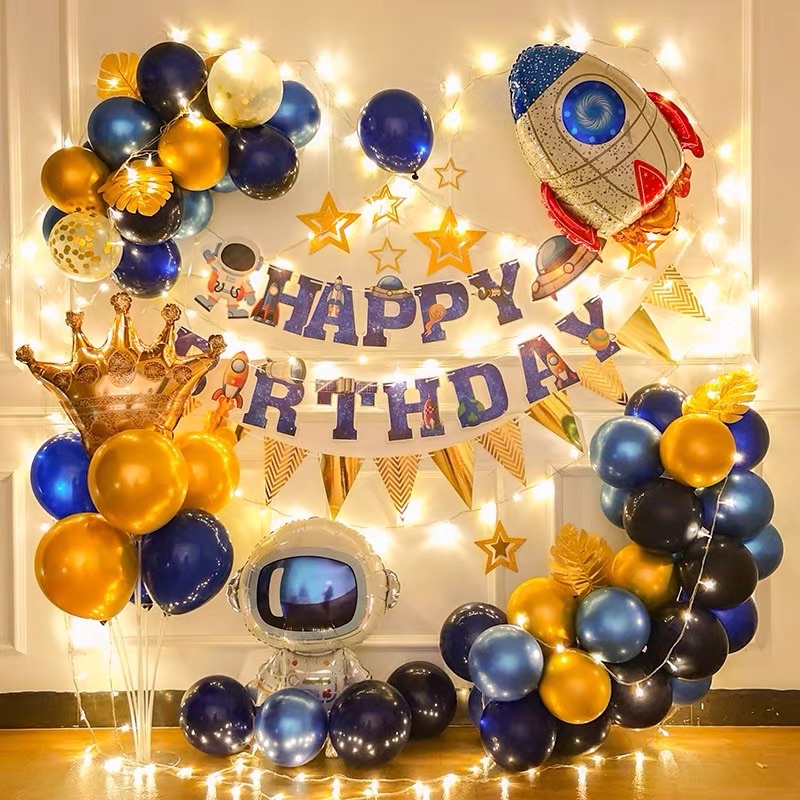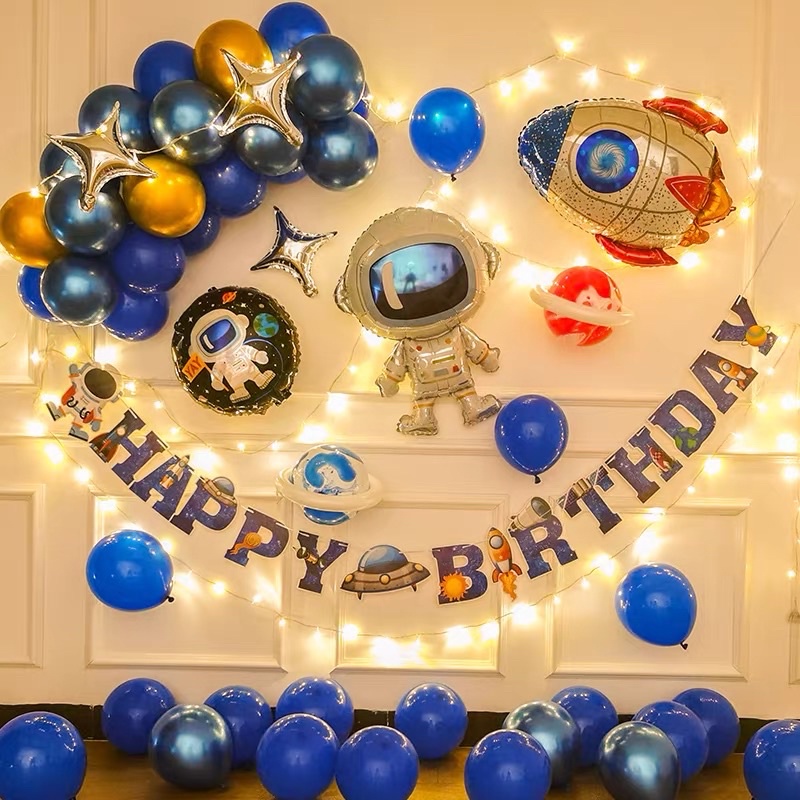 Astronaut Outer Space Balloon Set Angkasawan Spaceman Rocket Balloon Decoration Theme Party Happy Birthday Set