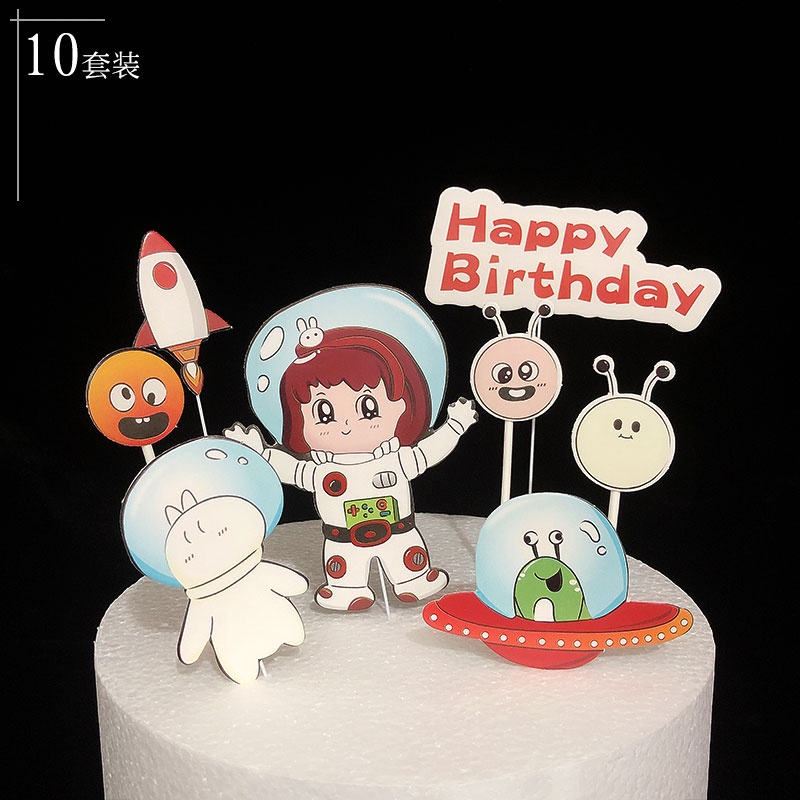 Astronaut Space World Cake Topper Spaceman Theme Party Baking Supplies Universe Outer Space Themed Birthday Cake De