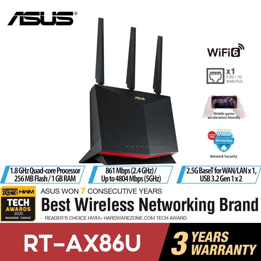 Asus RT-AX86U PRO AX5700 Dual Band WiFi 6 Gaming Router with Gaming Port and ASUS AiMesh WiFi system