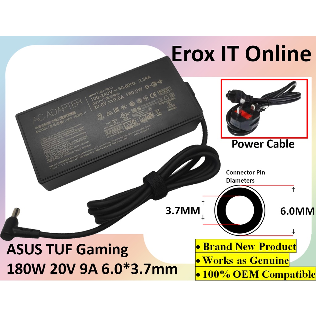 Asus TUF Gaming FA506IU-NB53 ROG 14 GA401I G14 GA5021 GA502D FX506LU ADP-180TB H 180W 20V 9A 6.0 * 3.7mm Charger Adapter