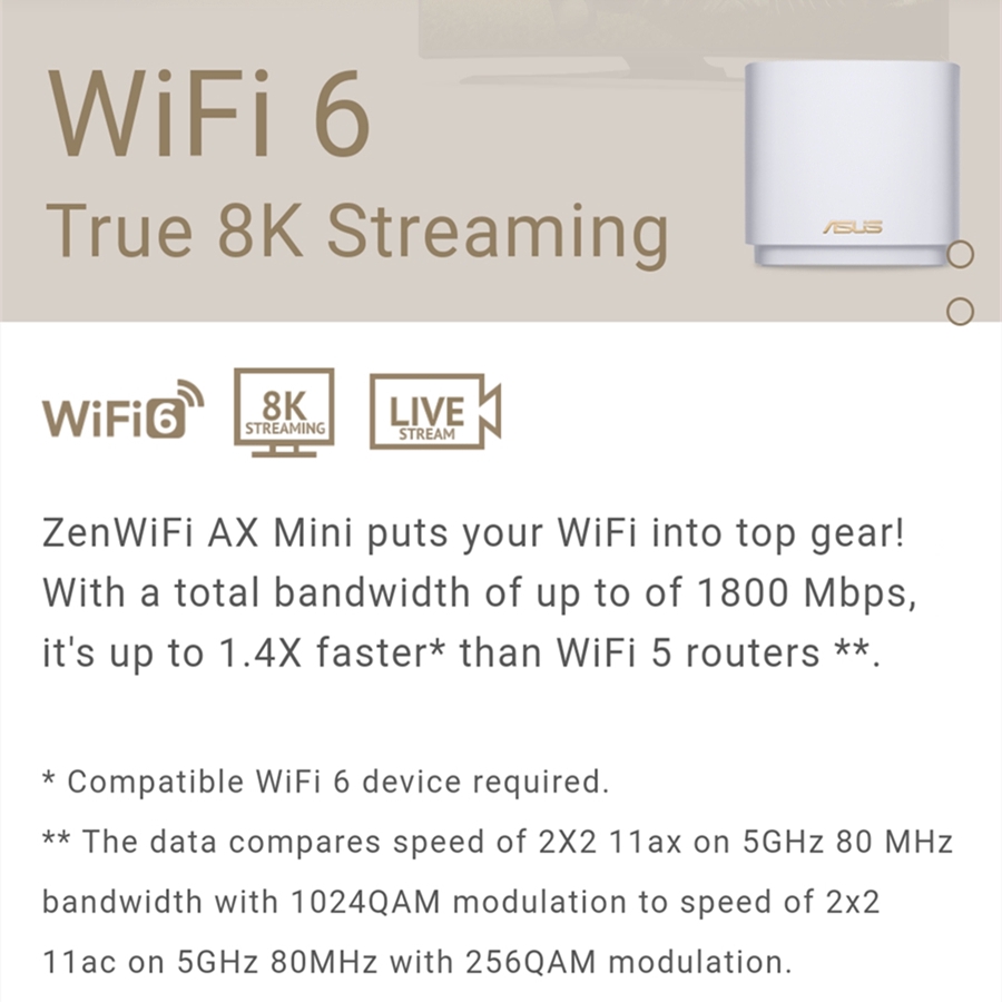 Asus ZenWiFi AX Mini (XD4) WiFi 6 AX1800 Mesh Wifi With Backhaul Gigabit Ethernet Wireless AX Router