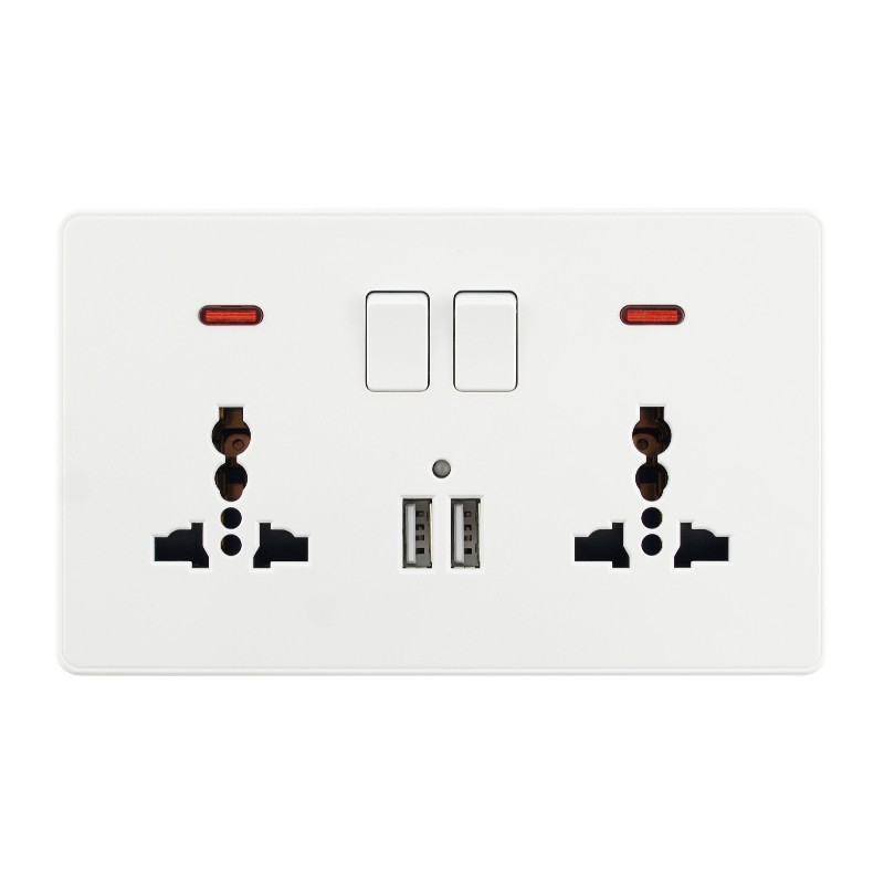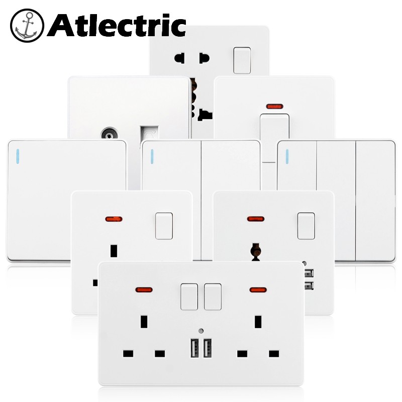 Atlectric Light Switch Wall Socket 20A 45A Air Conditioner Water Heater Power Switch White Plastic Frame Double Socket