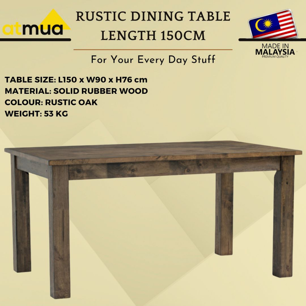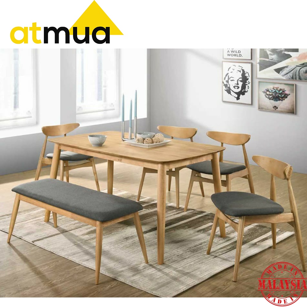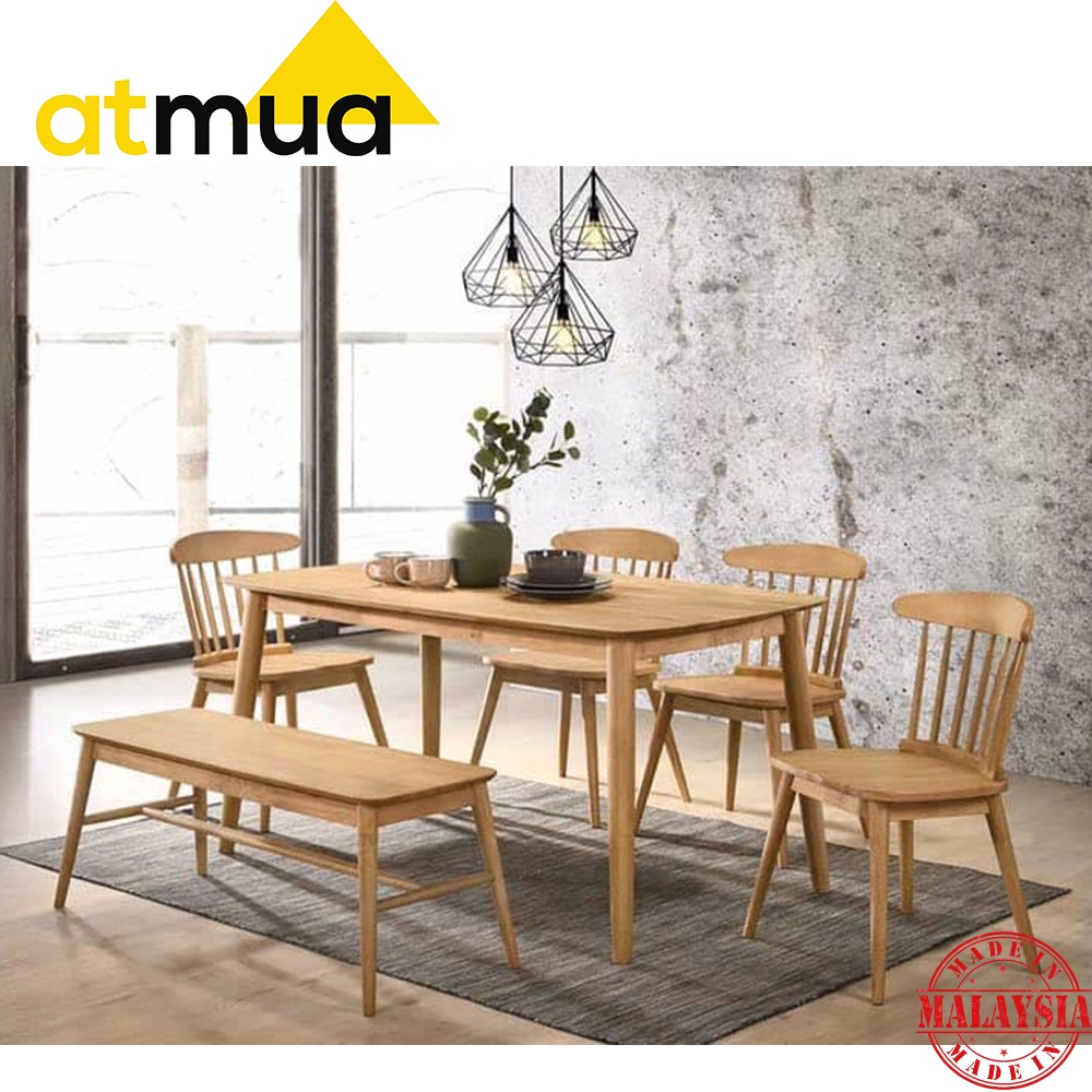Atmua Furniture Braw Dining Table (Scandinavian Style) [Full Solid Rubber Wood] Meja Makan Kayu Solid Kayu Getah