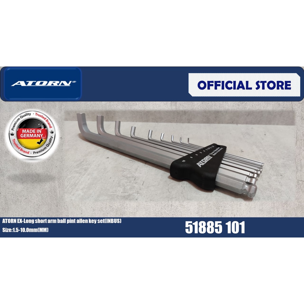 Atorn Germany 9pcs short arm ball point allen key nickle plated | Germany | PB Swiss | Bondhus