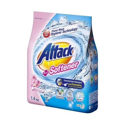 Attack Detergent Powder Plus Softener/Sabun Serbuk /1.4kg/1.6kg for Laundry Ultra Power/Color Sweet Floral/Floral Rom