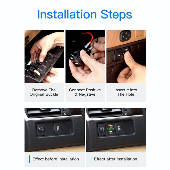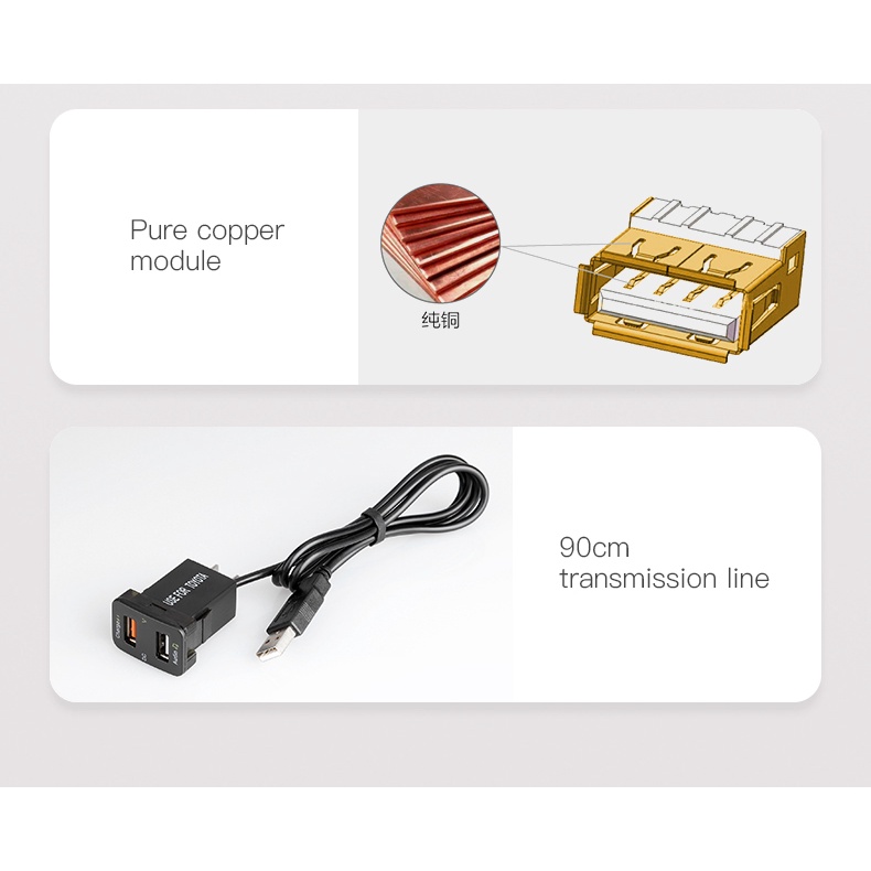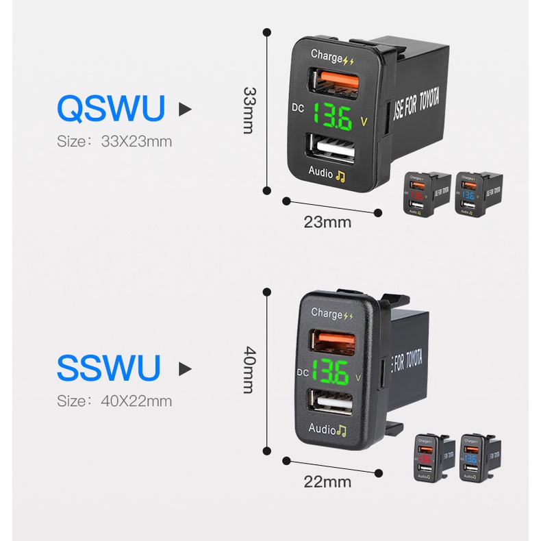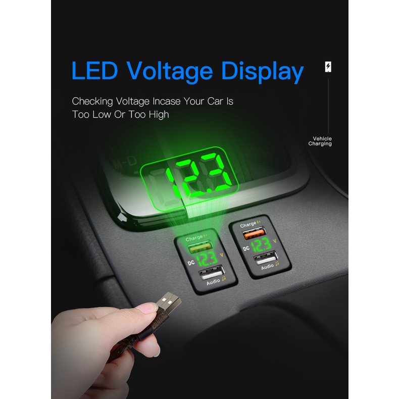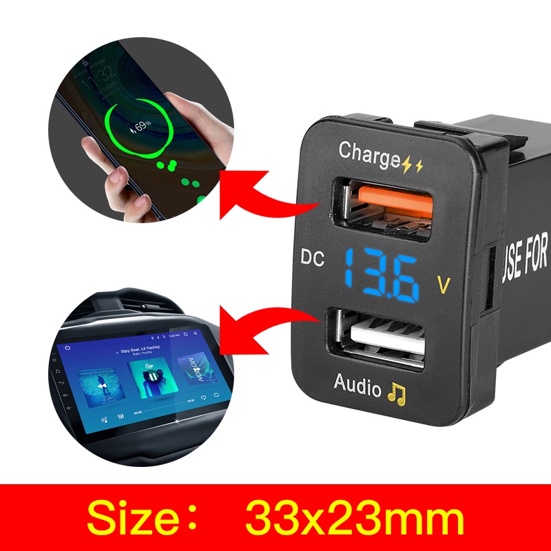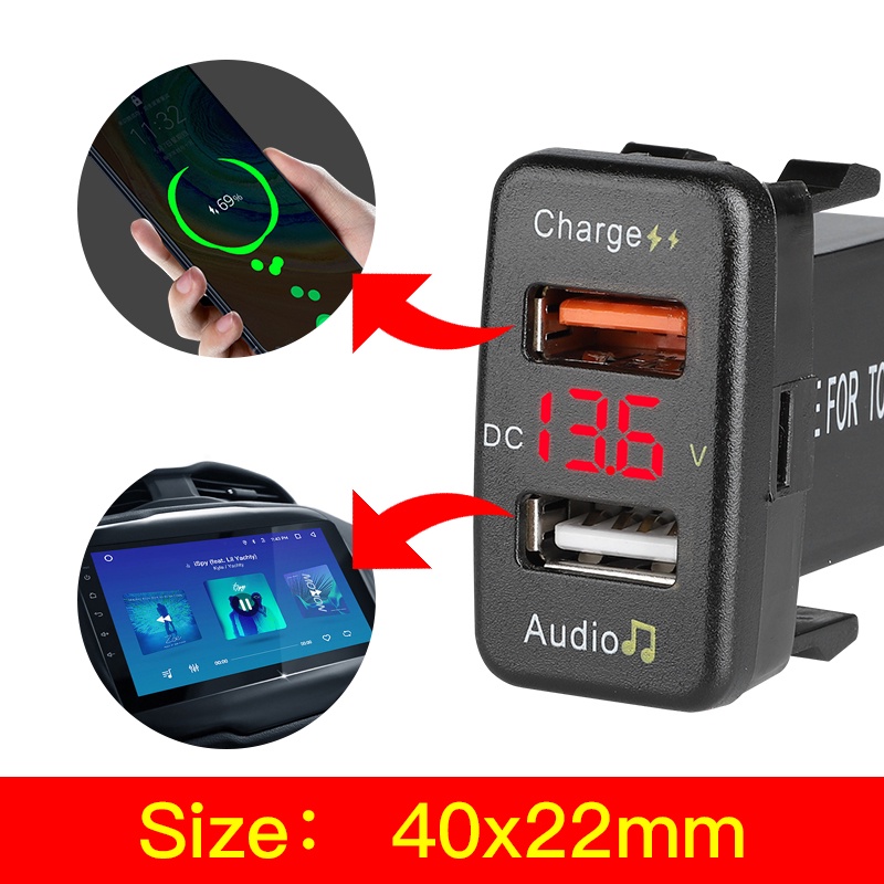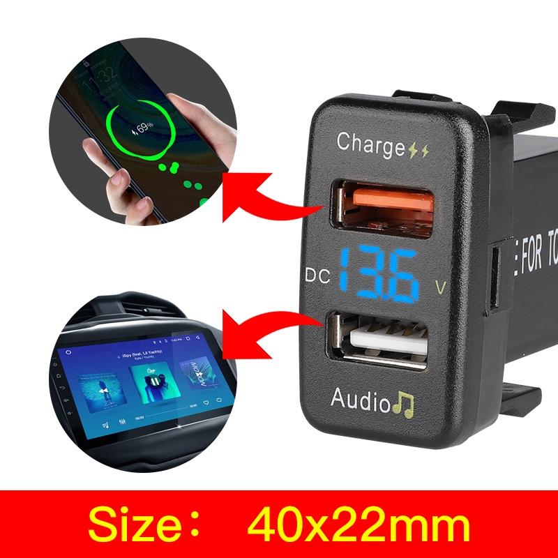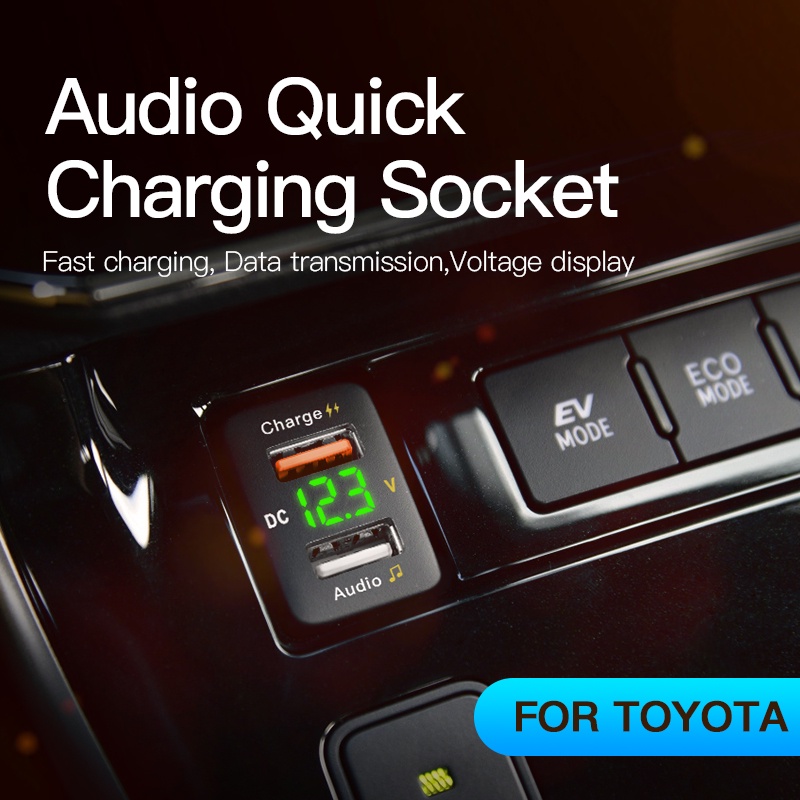 Audio Output Dual Port Car USB Input Charger With Voltmeter Led QC 3.0 Fast 12V Automotive Usb Socket For Toyota Corolla Cruise