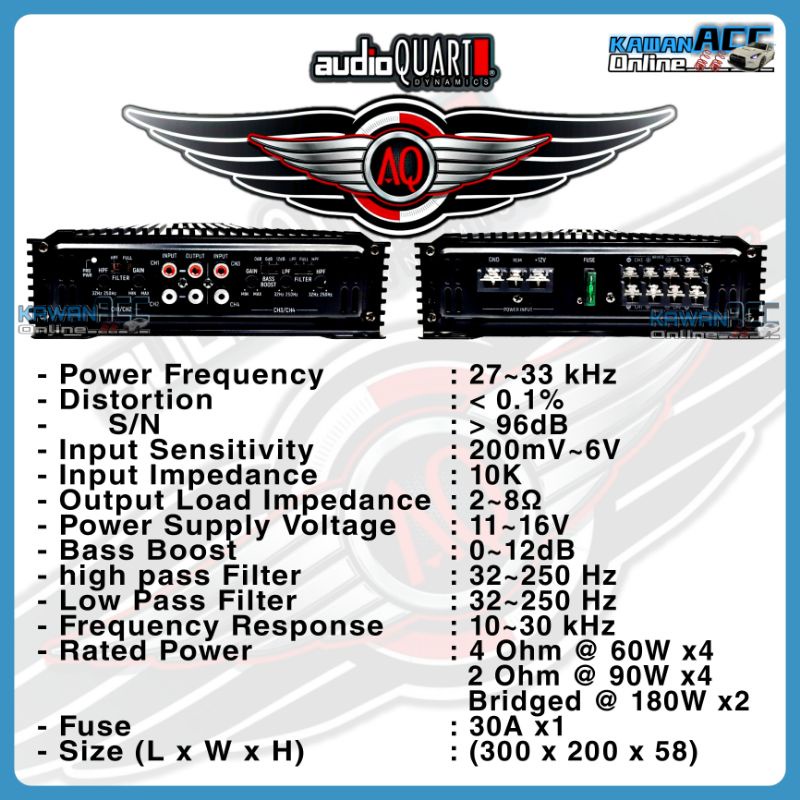 Audio Quart AQ GLA-Series 4 Channel Car Amplifier AQ-470.4-GLA 1200 Watts Car Power Amp Car Audio Sound Systems Automobi