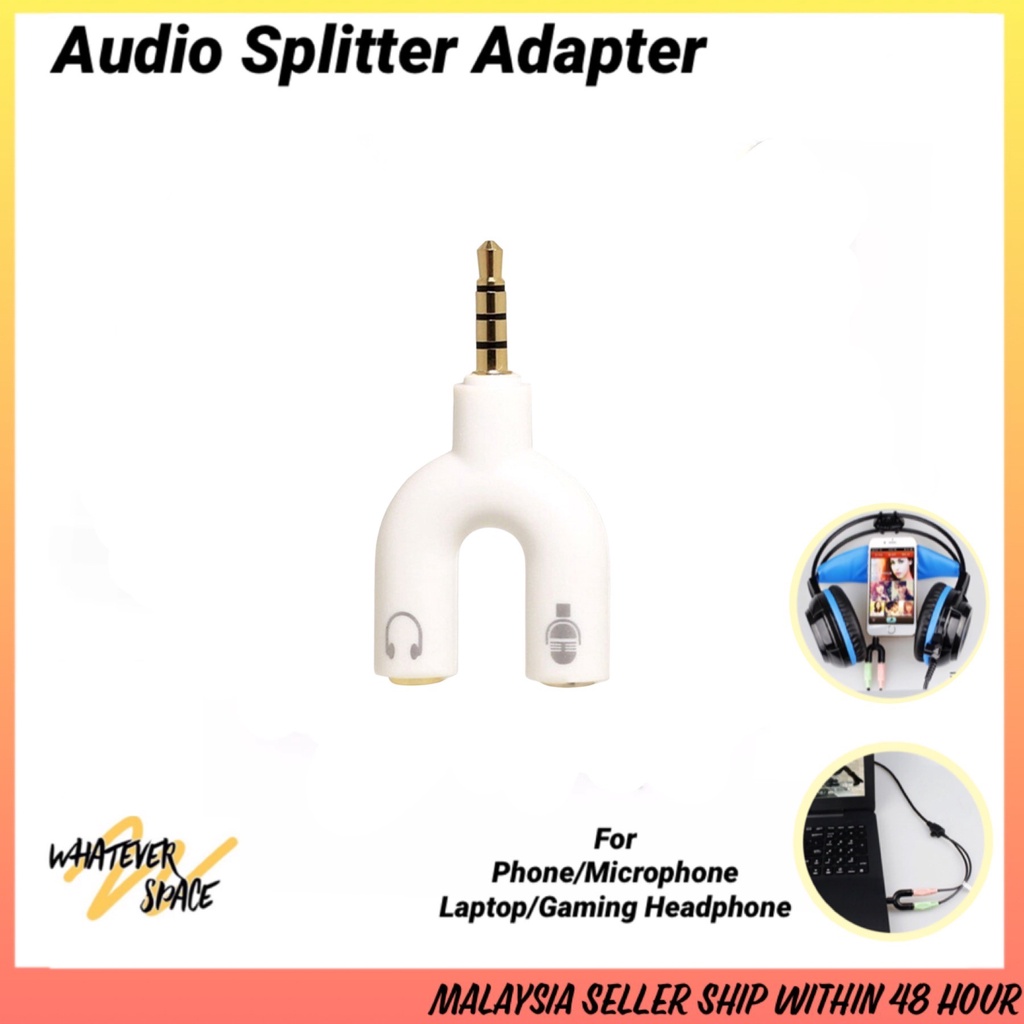 Audio Splitter Adapter 3.5mm Splitter Plug U-shape Stereo Audio Mic & Headphone Splitter For Pc Headphones Phone