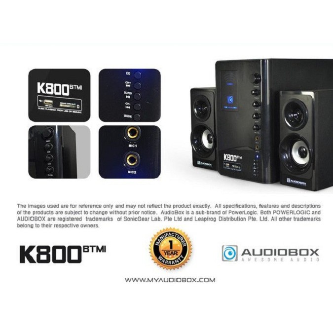 AudioBox K800 BTMI Bluetooth Multimedia 2.1 karaoke System Speaker (Free1 Wired Microphone) Sonicgear K800BTMI