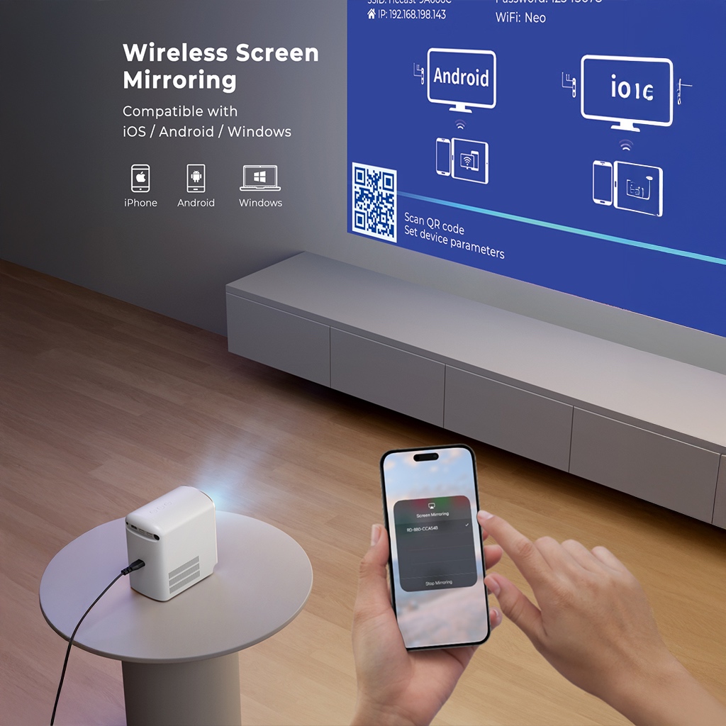 Aukey RD-880 Cinex Go Wireless Wi-Fi Projector with 1080p Resolution Support Screen Mirroring