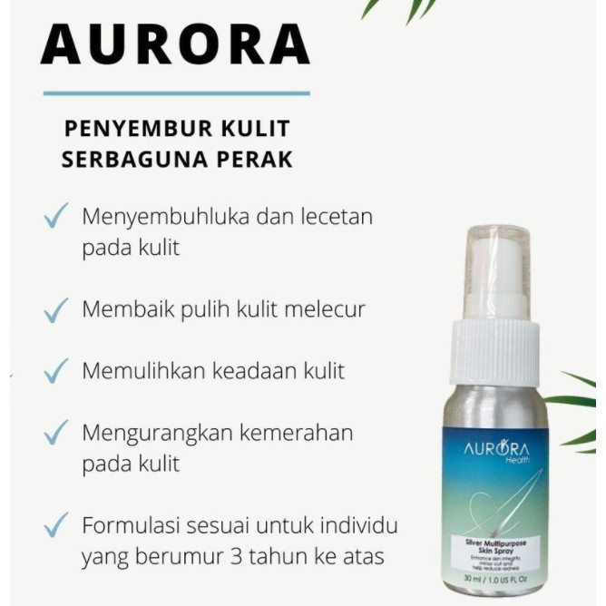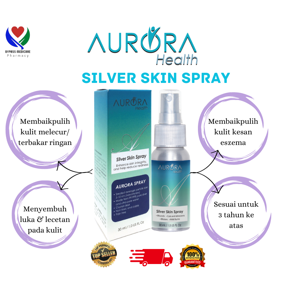 Aurora Silver Multipurpose Skin Spray 30ml Nano Colloidal Silver Wound Healing Sensitive Skin Eczema Diabetic Cut Scar