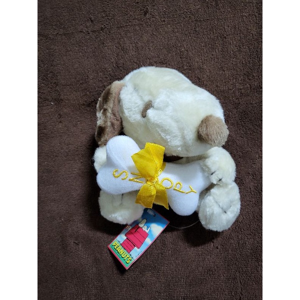 Authentic Rare Peanut Tan Colour Snoopy Holding Bone Plush Soft Toy