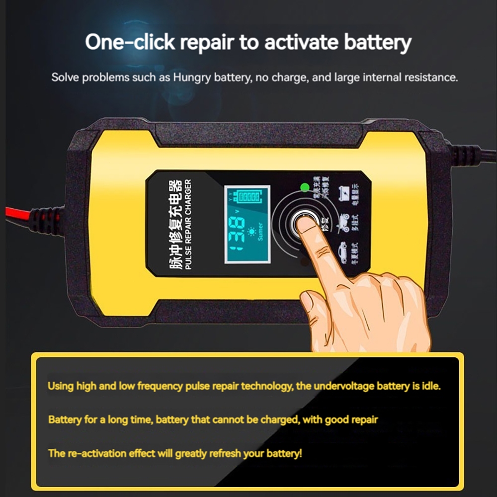 Auto Stop Intelligent Charger 12V 6A Car Battery Charger Bateri Repair Charging Cas Bateri Kereta Motor Pengecas Bateri