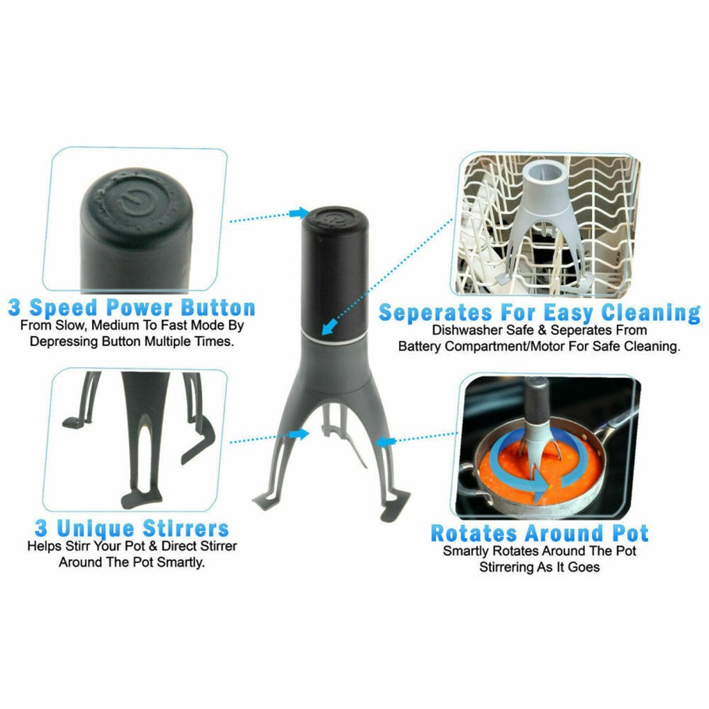 Automatic Pot Stirrer 3 Speed Auto Hands Free Kitchen Cooking Sauce Stir Mixer