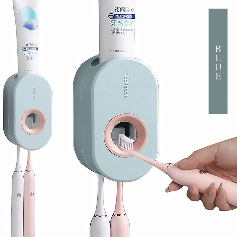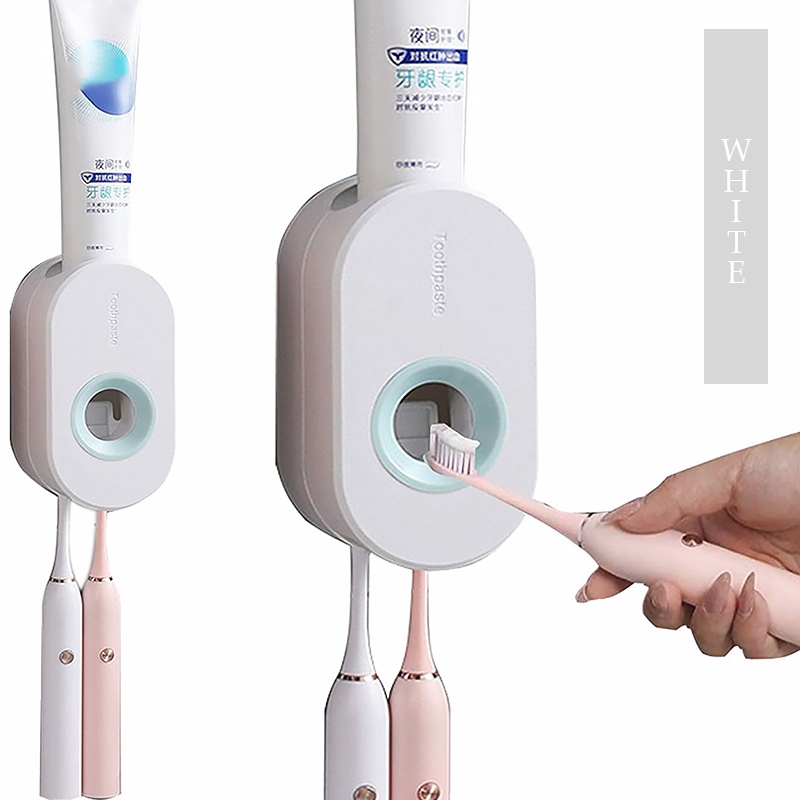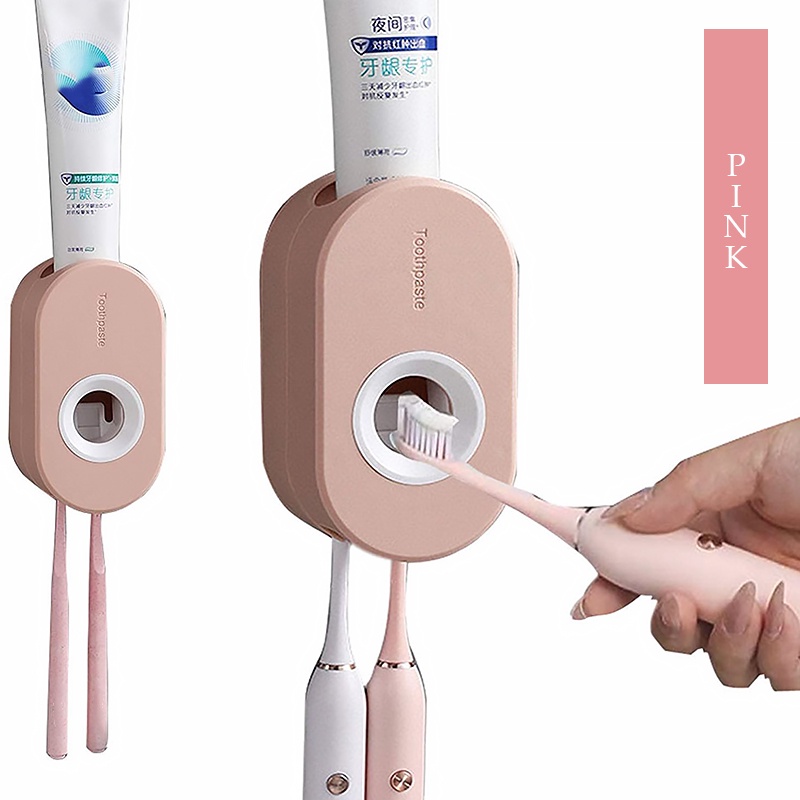 Automatic Squeezer Wall Mounted Push Toothpaste Dispenser Strong Adhesive Toothbrush Holder Bekas Letak Ubat Gigi