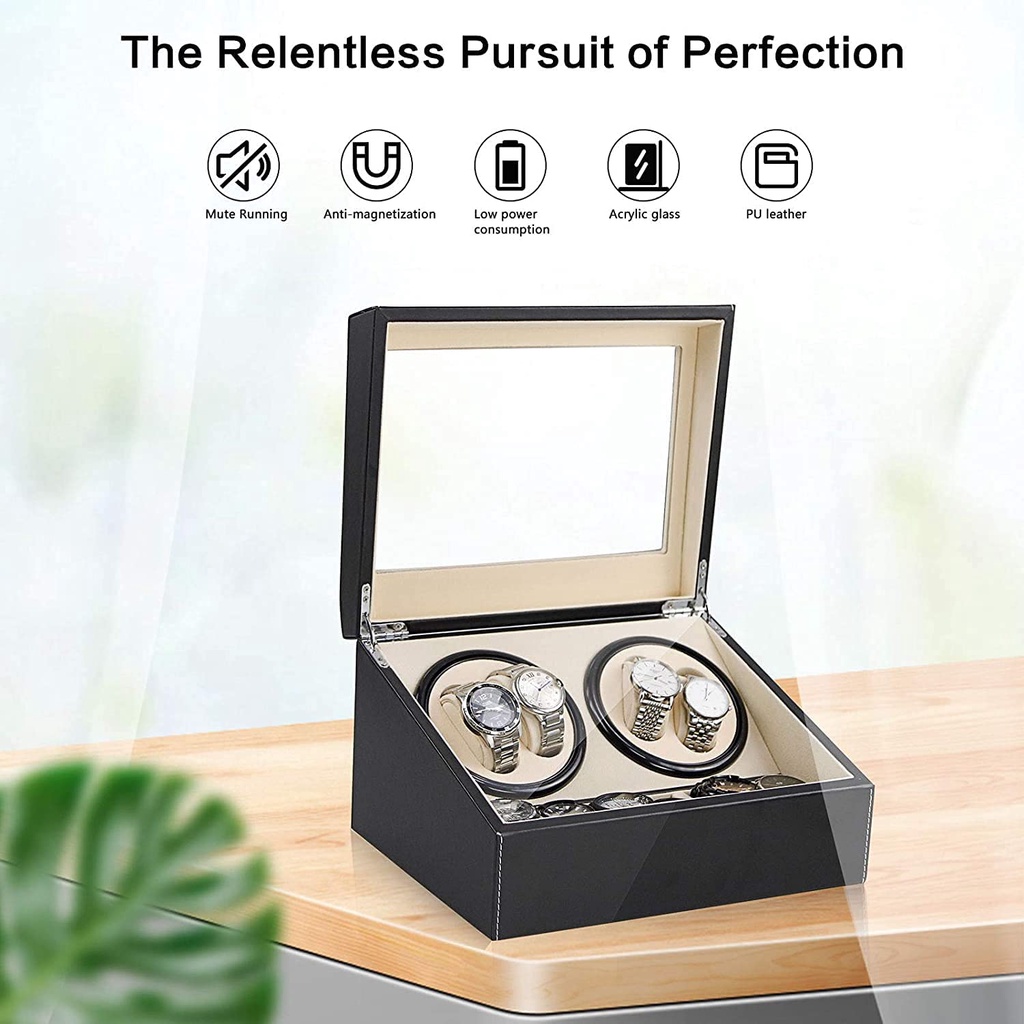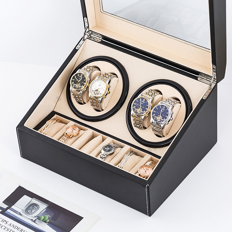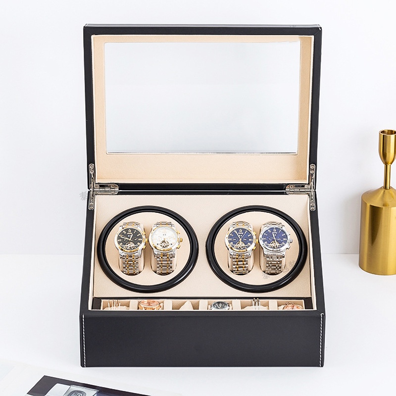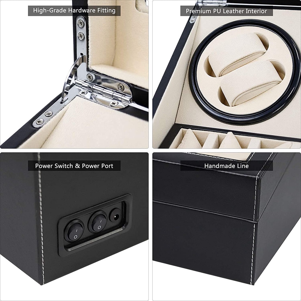 Automatic Watch Winder Display Box, 4+6 Automatic Rotation Leather Wood Watch Winder Collector Display Box Watch Case
