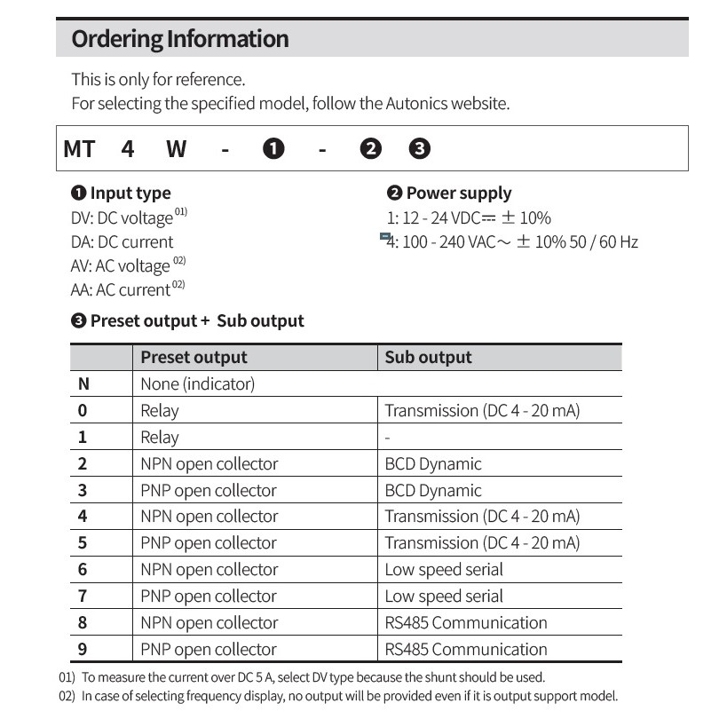 Autonics Panel Meter MT4W-AA-4N Current Meter Voltage Meter MT4W-AV-4N Voltage Indicator Current Indicator