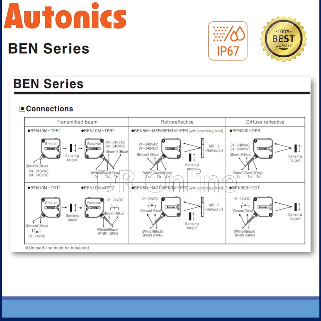 Autonics Photoelectric Sensor BEN5M-MDT RETROREFLEC 12-24VDC ~ RETROREFLEC NPN/PNP ~ 5M ~ T/O ~ BEN5M-MDT