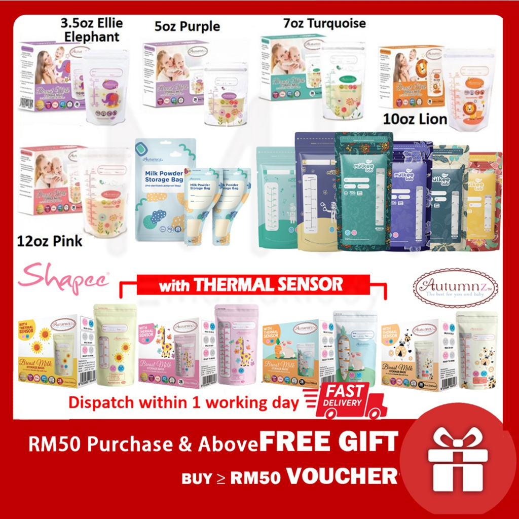 Autumnz Double Zip Breastmilk Storage / Thermal Sensor Bag 3.5oz / 7oz / 10oz / 12oz (28 bags)