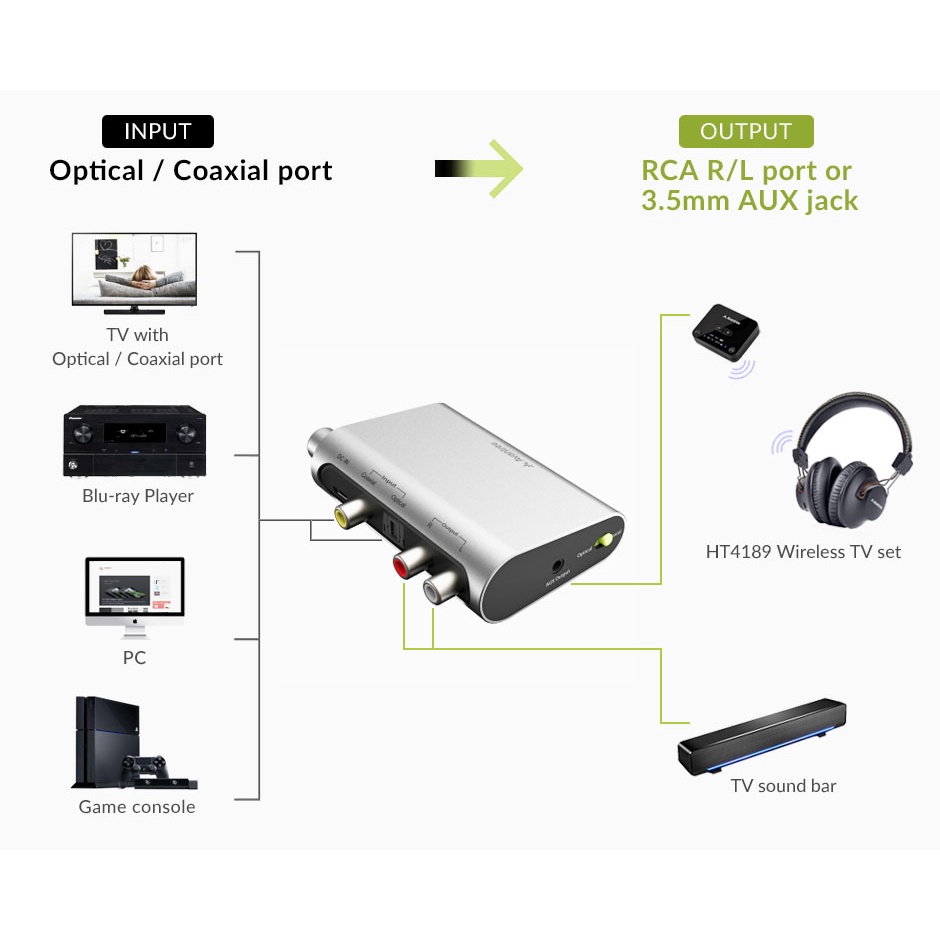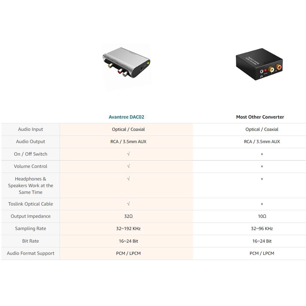Avantree Digital to Analog Audio Converter Box Adapter with Tos link Optical Cable, Volume Control, TV DAC02