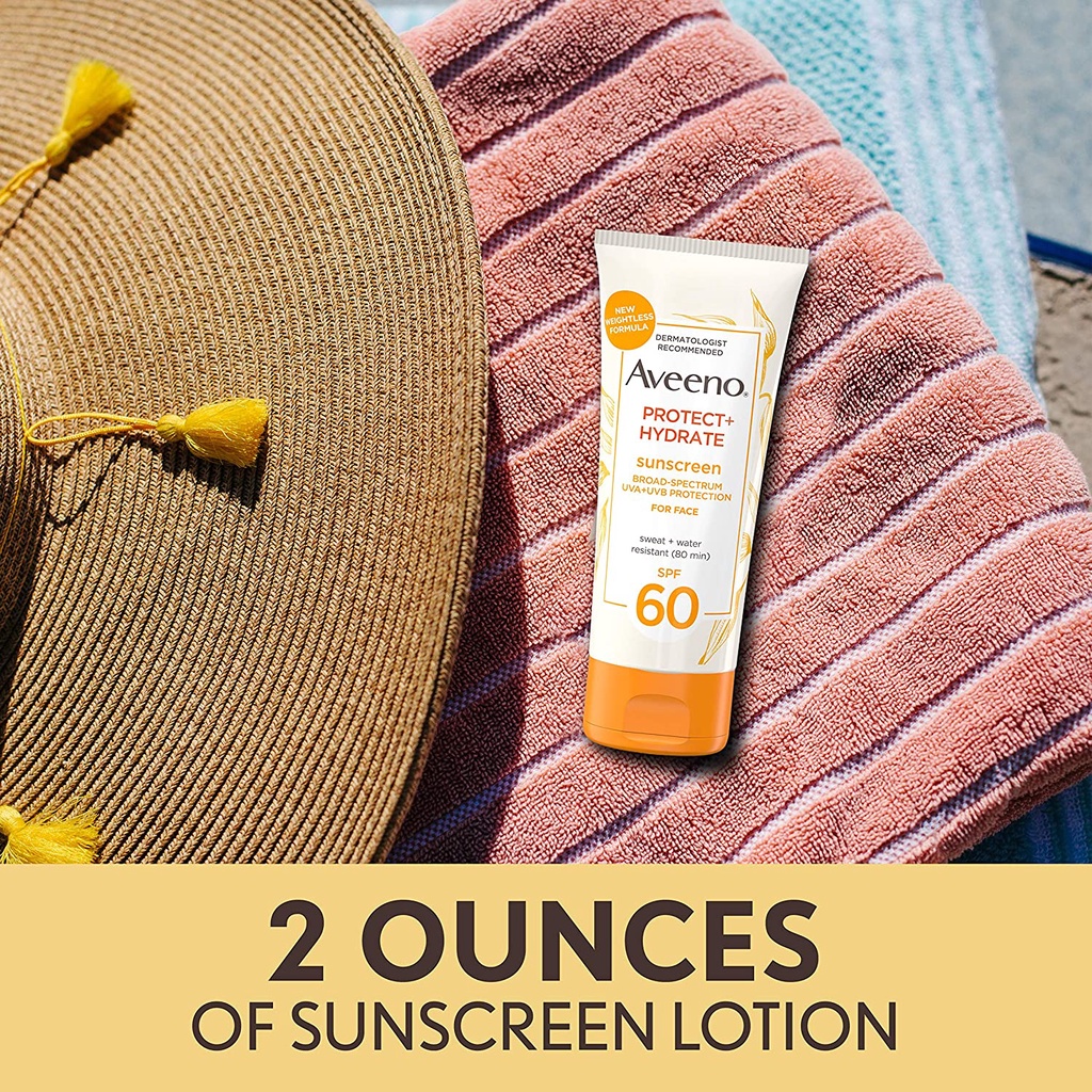 Aveeno Protect + Hydrate Moisturizing Sunscreen Lotion w Prebiotic Oat SPF 60/30 | Face & Body