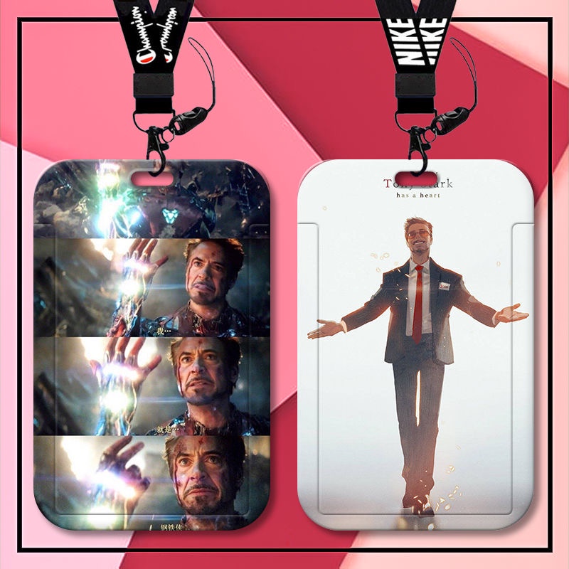 Avengers Iron Man card Cover student school card subway card bus card Case long lanyard Name card holder
