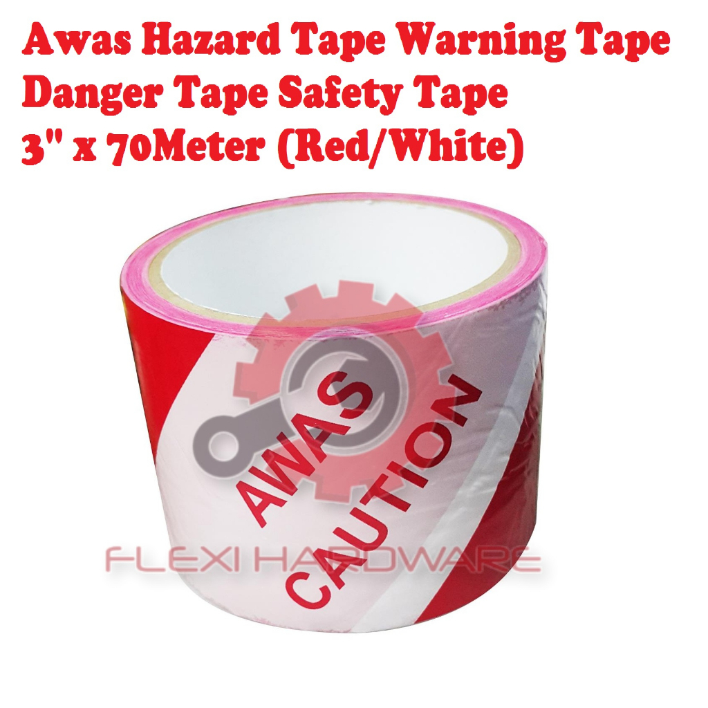 Awas Hazard Tape Warning Tape Danger Tape Safety Tape 3'' x 70Meter (Red/White)