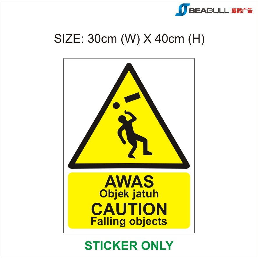 Awas Objek Jatuh Caution Falling Object Warning Amaran Sticker / Sticker With 1.5mm High Impact
