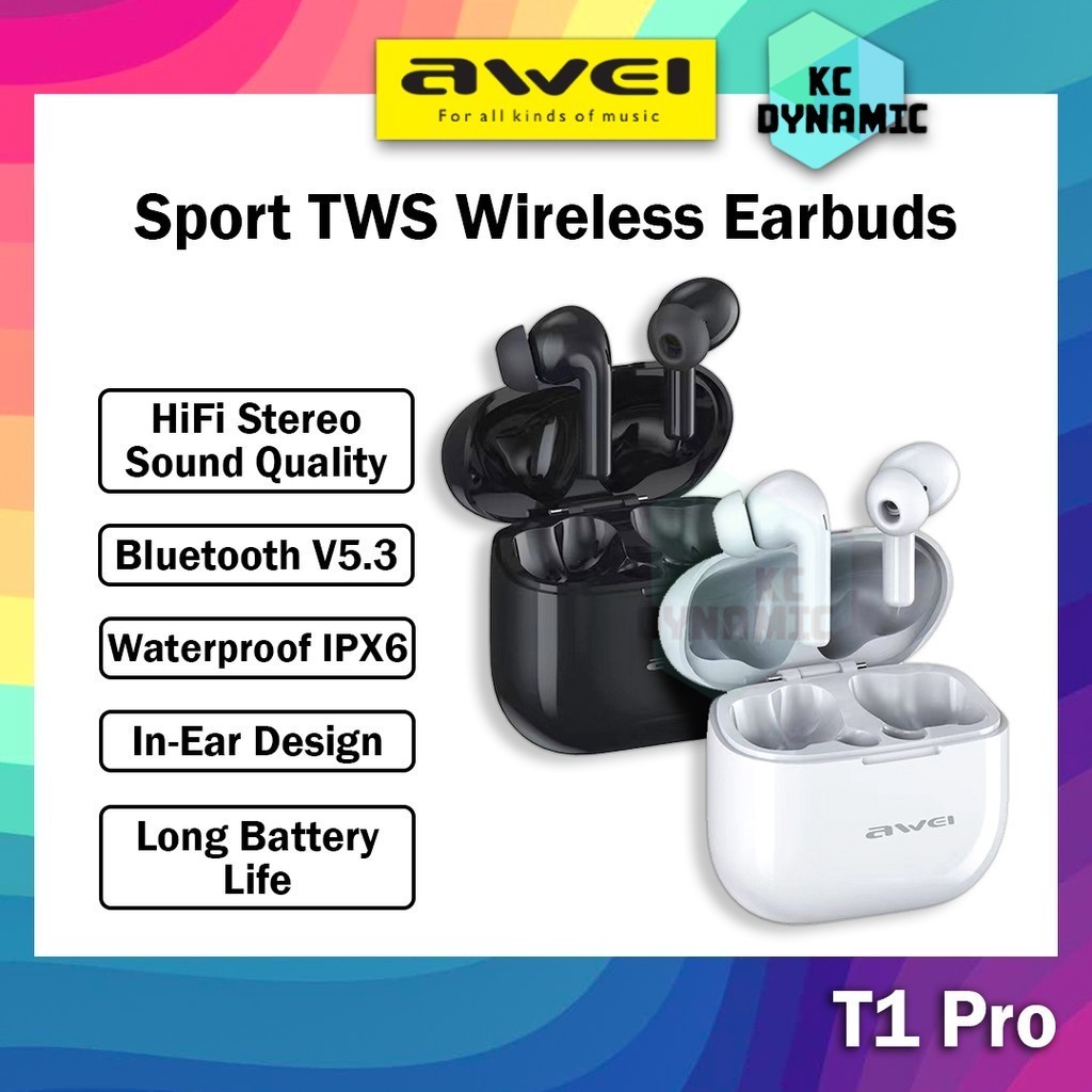 Awei T1 Pro True Wireless Earbuds HiFi Stereo Sound In-Ear Earphone Sport Awei Headphone Awei Bluetooth Earbuds