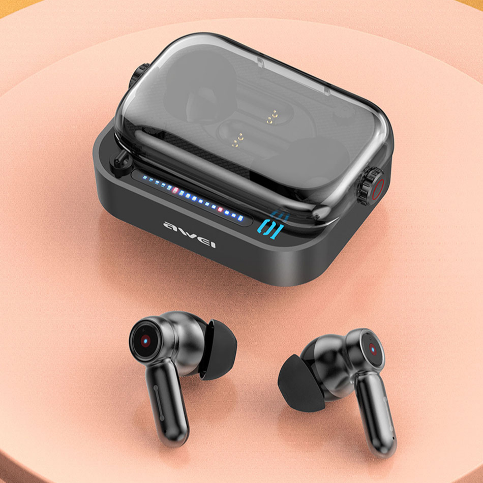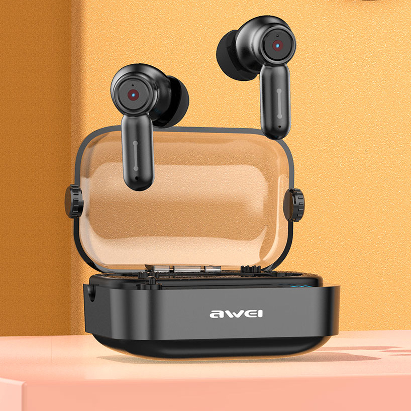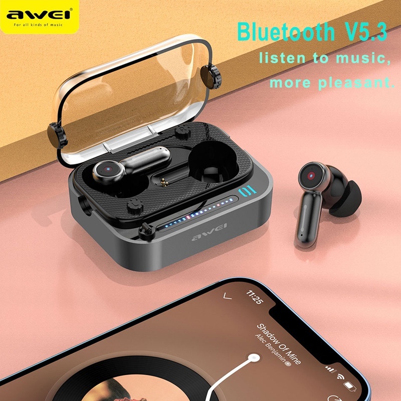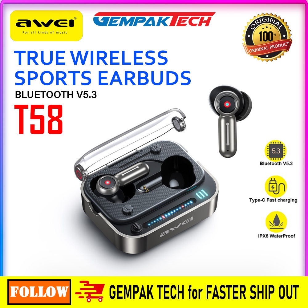 Awei T58 TWS Earbuds Bluetooth V5.3 BT Transparent Case Wireless Gaming Sports Earphones Nothing Inspired Design