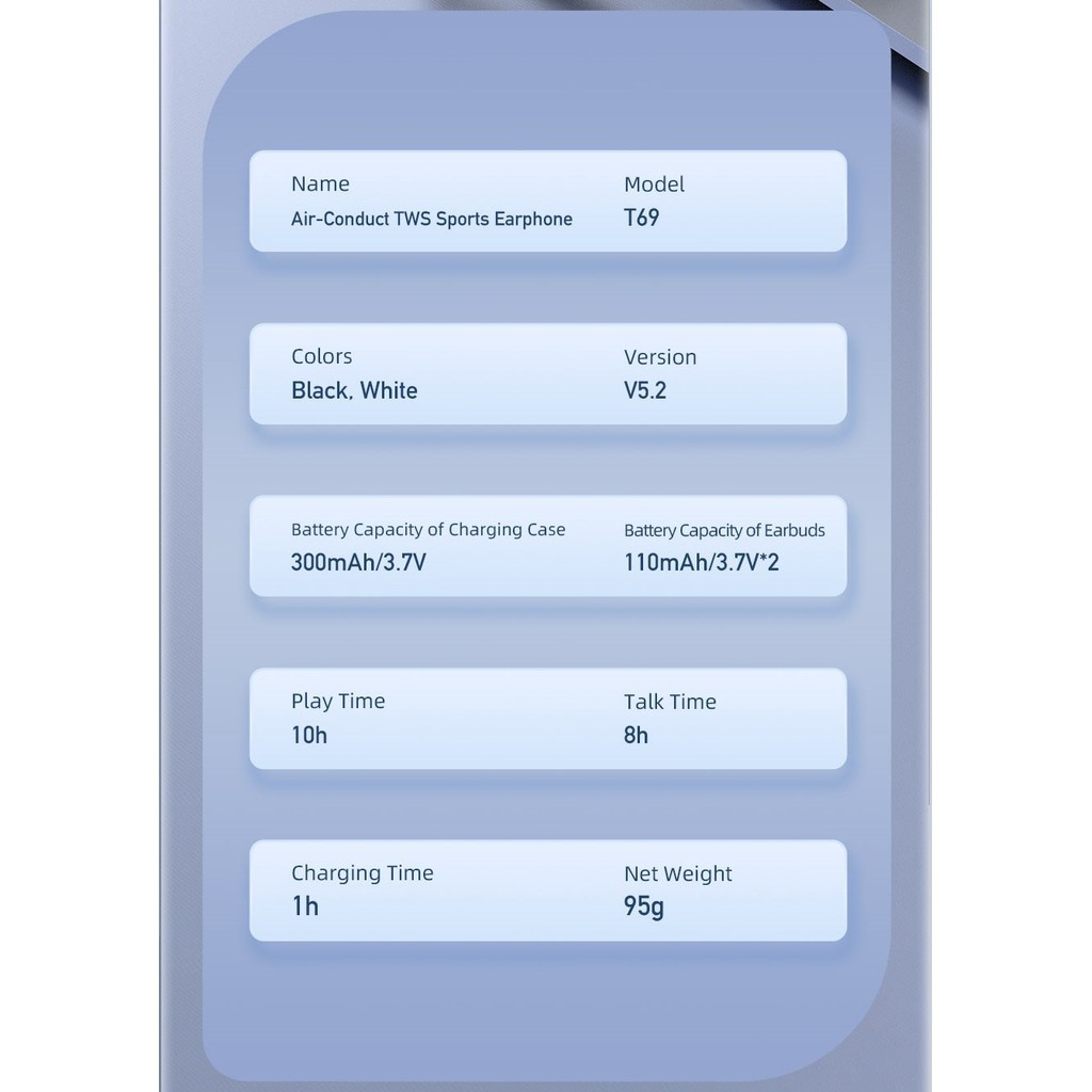 Awei T69 Air Conduction Earbuds Wireless Earbuds Ear Hook Headset Sport Earphone Sport Headphone Awei Bluetooth Earbuds