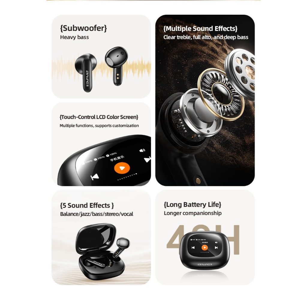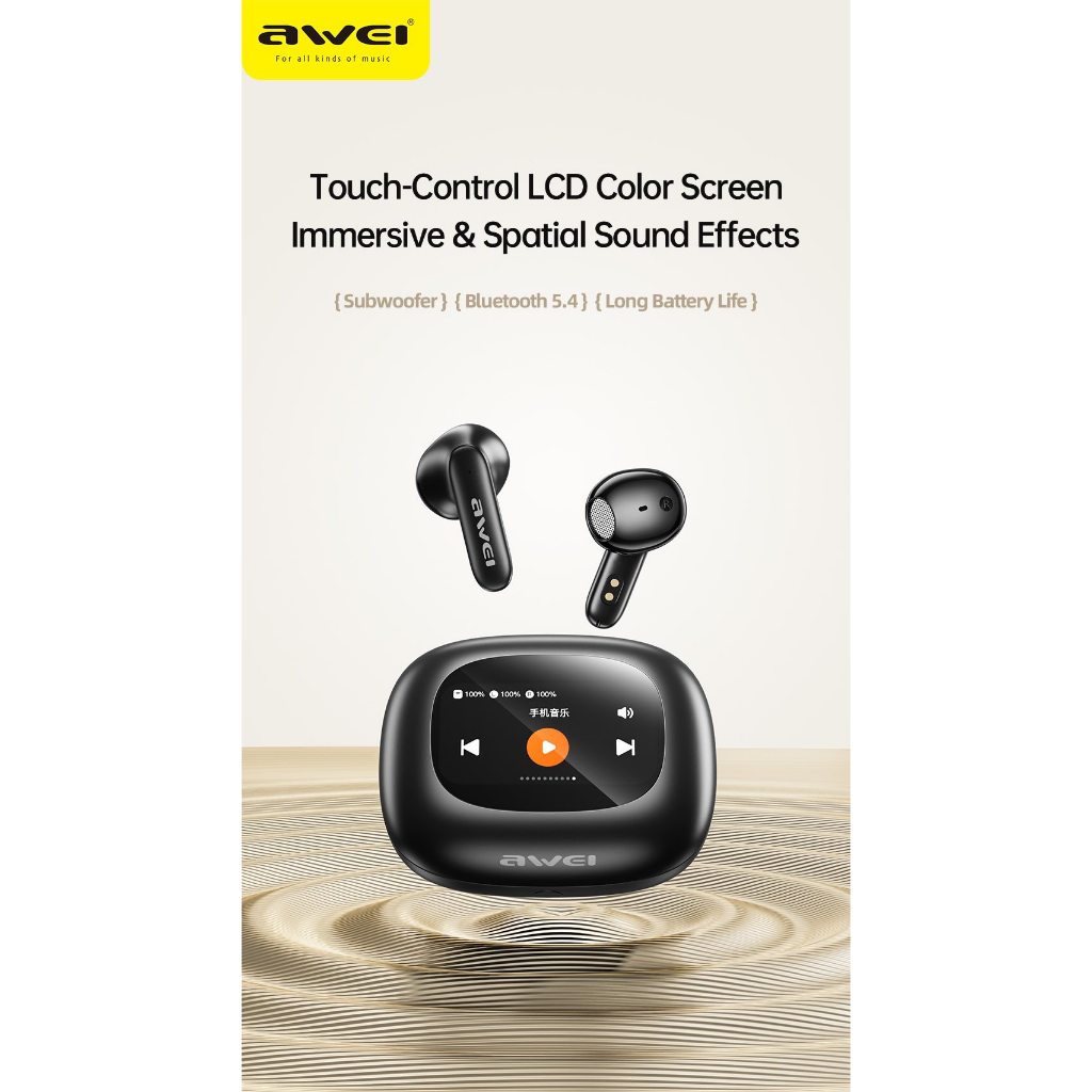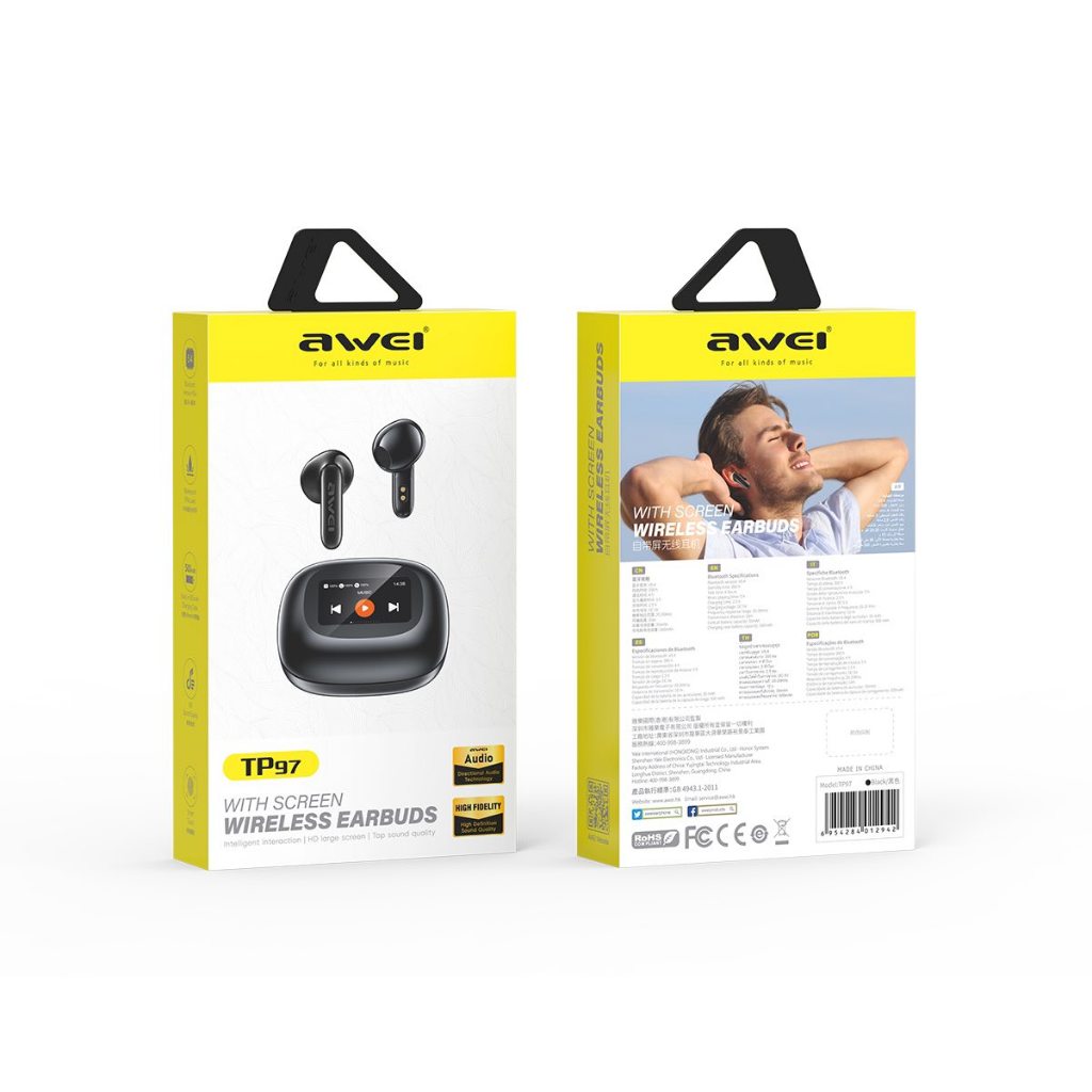 Awei TP97 Wireless Earbuds with Charging Case Bluetooth Earbuds with Screen Awei Wireless Earbuds Touch Screen Earbuds